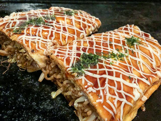 森下の交差点にあるお好み焼きのお店です。地元の人からも評価が高い隠れた名店。店主夫妻のファンも多いとか。